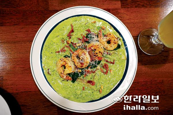시금치 페스토를 기본으로 한 시금치 페스토 크림 리조또는 허브종류인 바질을 견과류, 치즈를 함께 갈아 만드는 '바질 페스토'에 시금치를 넣어 변형한 메뉴다. 김 대표는 "한국인들에게 바질의 향이 익숙하지 않아 거부감이 들 수 있어 시금치를 주 재료로 한 페스토를 베이스로 한 리조또"라며 "꾸덕한 크림소스인데 쌀을 넣은 리조또와 면을 넣은 파스타 두 메뉴 중에 선택할 수 있다"고 덧붙였다.