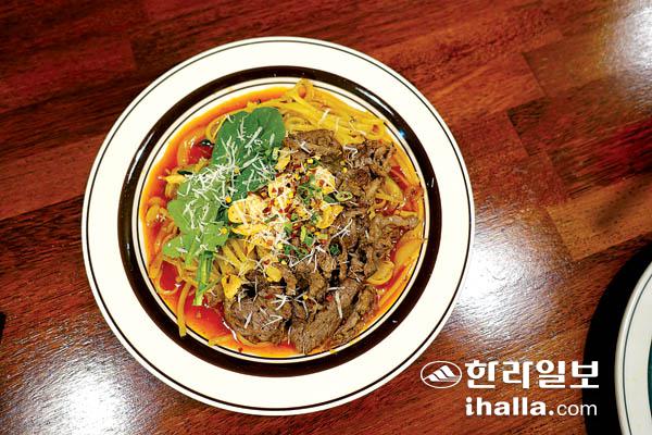 김 대표는 "매콤함을 더한 굴소스로 느끼함을 잡는 비결"이라며 "마늘 플레이크와 차돌, 면을 한꺼번에 먹으면 차돌 오일 링귀니의 풍미를 더 잘 느낄 수 있다"고 밝혔다.