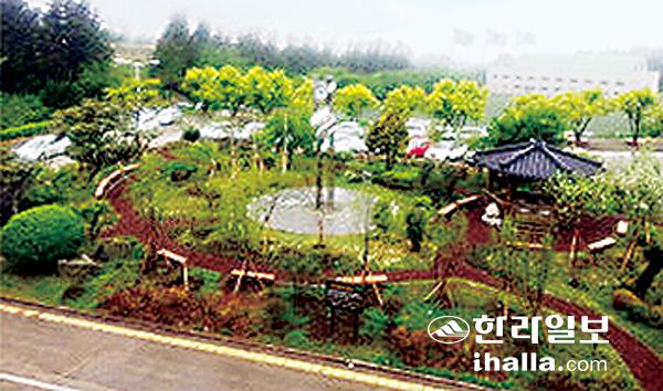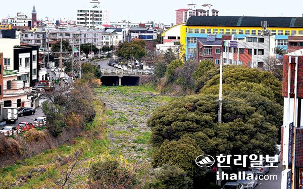 제주시 병문천과 하천 복개지에 조성된 도시숲. 강희만기자