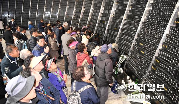 제71주년 제주4·3추념식이 지난 3일 제주4·3평화공원에서 거행된 가운데 유가족들이 위패봉안실을 찾았다.