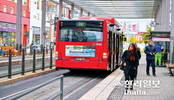 스웨덴 하마비를 운행하는 바이오에너지버스.