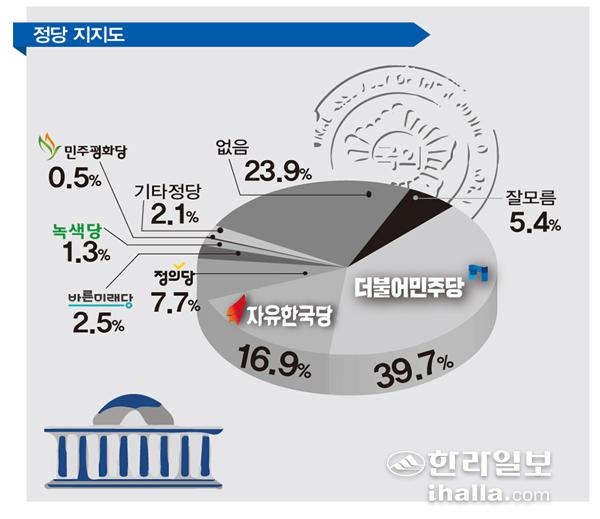제주시갑 선거구 주민들에게 내년 총선에서 어느 정당을 지지할지 물어봤더니 더불어민주당이 39.7%로 가장 높았으며, 이어 자유한국당(16.9%), 정의당(7.7%), 바른미래당(2.5%), 녹색당(1.3%), 민주평화당(0.5%) 순으로 나타났다. '기타 정당'은 2.1%, '없음'은 23.9%, '잘 모름'은 5.4%로 부동층이 29.3%였다. 60대 이상을 제외한 거의 모든 연령층에서 더불어민주당이 가장 높게 나타났으며, 특히 40대(51.9%)에서는 더불어민주당이 절반 이상의 지지율을 보였다. 반면 60대 이상에서는 자유한국당이 36.6%로 가장 높아 세대 간 정당 지지율에 큰 차이를 보였다. 도정운영을 부정적으로 평가하는 경우(48.6%)와 긍정적으로 평가하는 경우(31.0%) 모두 더불어민주당이 가장 높거나 오차범위 내에서 우세한 양상이었다.