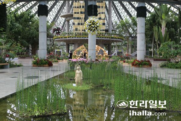 계절별로 주제를 바꾸어 식물과 디자인의 아름다움을 보여주는 식물원의 대표적인 디스플레이 정원인 중앙홀.