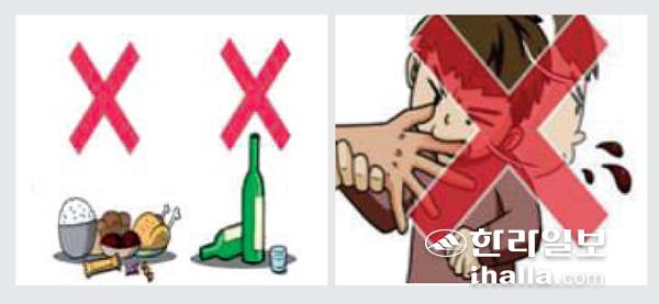 ①뱀 가까이 가지 마세요. ②뱀에 물린 부위를 압박 붕대 등으로 꽉 묶지 말 것(원위부 허혈성 손상 악화). ③뱀에 물린 부위를 칼로 절개하지 말 것(조직손상, 세균감염 발생). ④뱀에 물린 부위를 입으로 흡입하지 말 것(독에 노출 위험 증가) ⑤의사의 지시가 있을 때까지 금식하세요. <자료출처=제주대학교 농업안전보건센터>