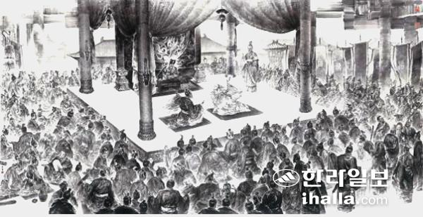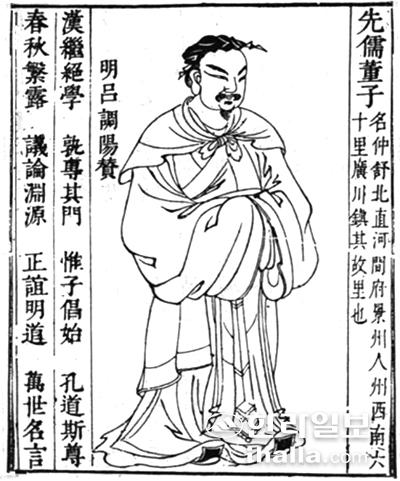 효렴, 수재 등 널리 인재를 구하는 천거를 통해 채용된 동중서가 한무제의 책문에 대책을 올리고 있다.