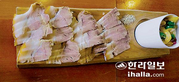 다음은 먹기 좋게 얇게 썬 돔베고기를 젓가락으로 집었다. 잡내나 느끼함이 없이 육감(肉感)을 그대로 느낄 수 있어 귀한 특수부위를 먹는 기분이었다. 주인장이 강조하던 '숙성'이 허풍이 아니었음을 깨닫게 되는 순간이다.