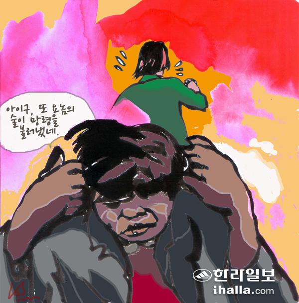 "아이구, 또 요놈의 술이 망령을 불러냈네."