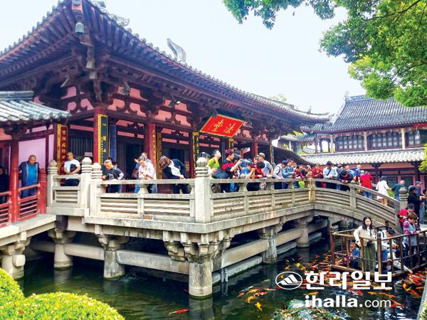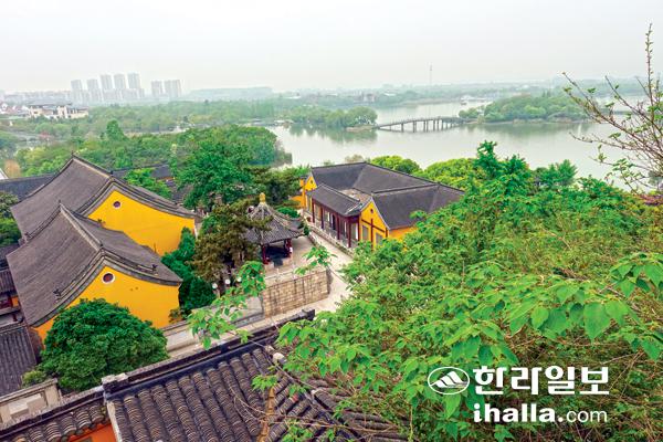 소주의 대표적 사찰인 한산사를 찾은 관광객들이 추억을 남기고 있다.