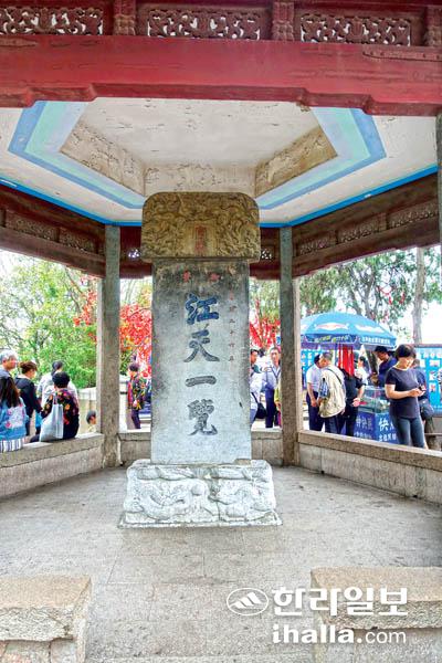 청나라 강희황제가 금산사에서 바라본 장면을 보고 감동하며 썼다는 '江天一覽(강천일람)'.