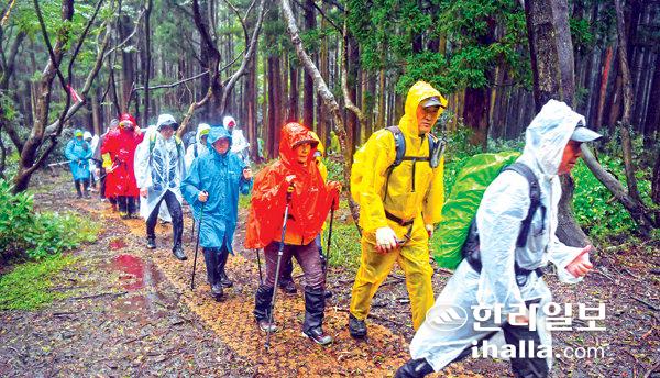 삼다수숲길을 걷고 있는 참가자들. 강희만기자
