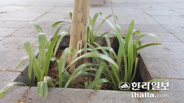 충분한 빗물 공급을 위해 포장을 하지 않은 가로수길.