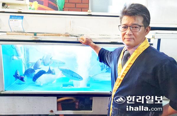 직접 배를 몰고 바다에 나가 재료를 공수해 온다는 삼도횟집 주인장인 김영권 대표.