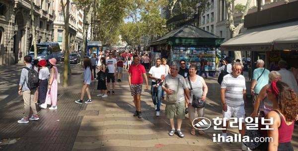 스페인 바르셀로나 람블라 거리가 아침부터 쏟아져 나온 관광객들로 인산인해를 이루고 있다. 이상민기자