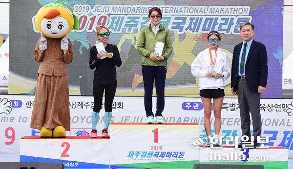 2019제주감귤국제마라톤 여자부 10km 시상식. 이상국기자