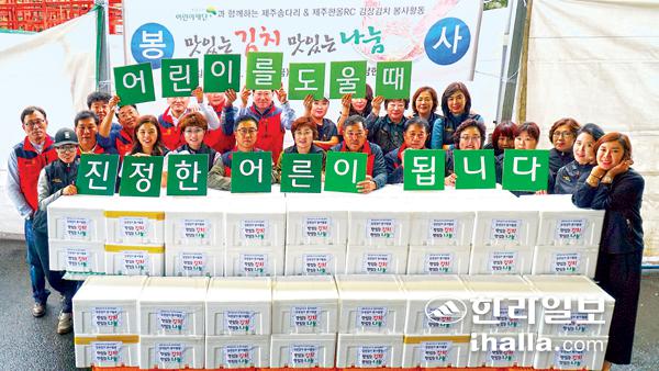 올해 공동사업으로 제주도내 취약계층 아동을 위해 아동자립지원금을 후원하고 있는 제주솜다리·한올로타리클럽은 지난달 김치 봉사도 진행했다. 사진=초록우산 제공