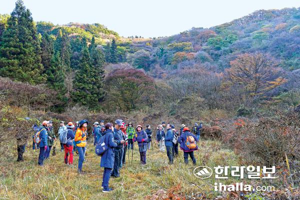 이날 에코투어 참가자들은 왕이메 오름 인근에 모여 안전요원의 지도에 따라 가볍게 몸을 푼 뒤 본격적으로 에코투어 탐방에 나섰다.