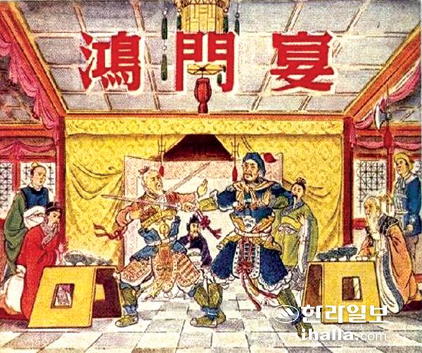 유비는 마치 기다렸다는 듯이 식탁 아래로 몸을 구부려 젓가락을 집는다. 조조에게는 놀란 그가 식탁 아래로 숨는 것처럼 느껴졌을 것이다. 그들 두 사람이 모인 까닭은 술이나 한 잔 하자는 것이었지만, 조조는 조조대로 유비는 유비대로 서로 속셈이 달랐다. 얼마 후 관우와 장비가 등장하는데, 헐레벌떡 뛰어 들어온 그들을 보고 조조가 말한다. "여기는 홍문연鴻門宴이 아니거늘 무슨 항장項莊과 항백項伯이 있겠소. 여봐라! 저 두 번쾌樊쾌에게도 술을 올려라!" 난세의 간웅이자 횡삭부시橫삭賦詩(전쟁터에서 잠시 창을 놓고 시를 짓는다는 뜻)의 문인 조조의 입에서 나온 '홍문연' 역시 먹기 위한 연회가 아니라 서로 모의를 위한 반국이었다.