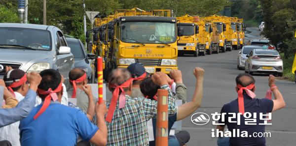 지난 8월 제주시 봉개동 주민들이 봉개동 쓰레기매립장에 쓰레기 반입을 저지하는 집회