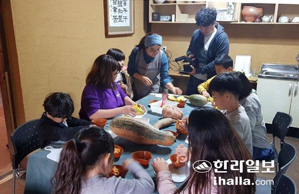 아이들이 향토음식을 만들고 있는 모습. 사진=어멍아방농촌유학협동조합 제공