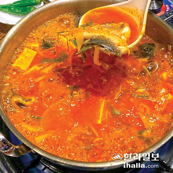 벵에돔 회를 먹은 뒤 나온 얼큰한 매운탕.
