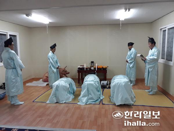 새해 풍요와 안녕을 기원하는 연대마을 마을포제를 올리는 모습. 주민들이 참여하는 공동의례로 자연과의 친화와 이웃 간의 결속을 다지고 있다. 사진=외도동주민자치위원회 제공