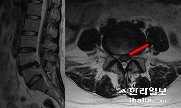 요추 제 4-5번에 발생한 추간판 탈출증의 MRI. 제주대학교병원 제공