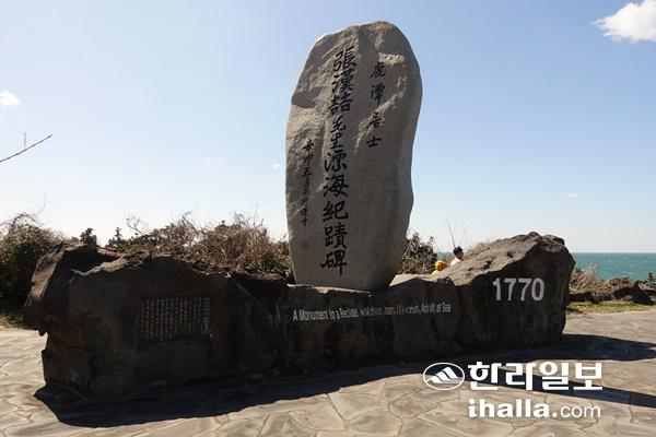 한담공원에 세워진 '장한철 선생 표해기적비'.