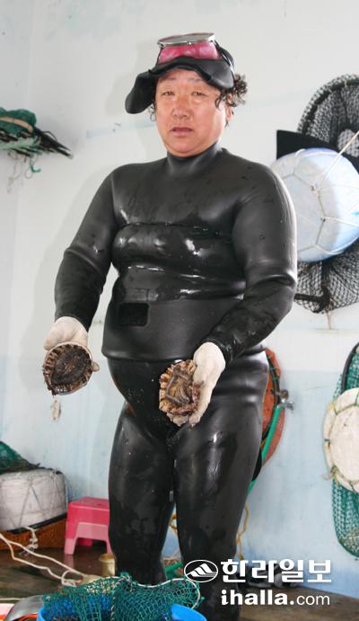 전복을 두 손에 든 잠녀
