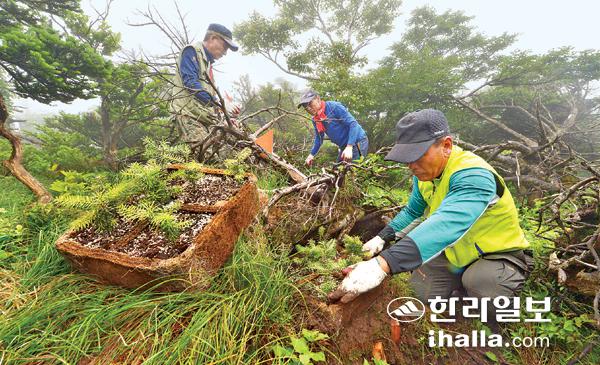 현재 진행되는 종 복원매뉴얼은 한라산의 토양오염이나 훼손방지와 함께 생존을 높이기 위해 특수 제작된 용기에 어린나무를 키워 자생지에 옮기는 방법이다. 2017년부터 지난해까지 한라산 환경특성을 고려해 3000여본이 시험 식재돼 연구 중이다. 지금까지 90% 이상의 생존율을 보이지만 노루 피해 및 제주조릿대와 경쟁 등 생장을 유지시키기 위한 해결과제도 많다. 2026년을 목표로 하는 복원매뉴얼개발은 한라산의 다양한 지형, 기상 및 식생 등을 고려한 맞춤형 기술이다.