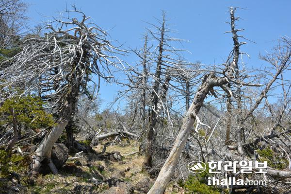 말라죽어가고 있는 한라산 구상나무숲. 사진=한라일보 DB