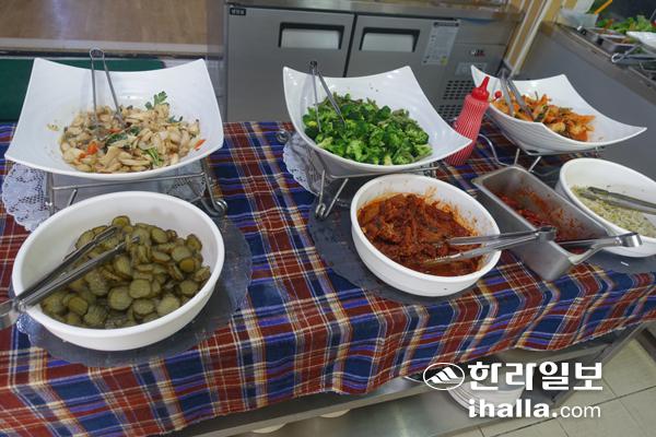 가게를 둘러보자 돈가스, 치킨, 멸치튀김, 잔치국수, 순대, 머릿고기, 갈치구이 등 수십 가지의 음식과 반찬이 눈에 들어왔다. 음식 코너 제일 앞쪽에는 밥을 담은 밥솥 두 개가 놓여 있었다. 한쪽에는 현미밥이, 또 다른 한쪽에는 흰쌀밥이 놓여 있었다. 손님의 기호에 따라 뜰 수 있도록 하는 진 대표의 세심한 배려가 돋보인다. 안쪽으로 더 들어가자 식당 한쪽에는 셀프로 라면과 계란 프라이를 조리할 수 있는 코너가 눈에 띄었다.