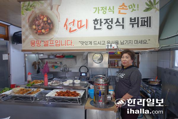 지난 2018년에 문을 연 선미 한정식 뷔페의 상호는 주인장 진선미(55)씨의 이름을 따서 만든 가게다. 울산 출신인 진씨는 27살 때부터 식당에서 일하며 요리를 시작했다고 한다. 주로 대형 함바(건설 현장 안에 지어놓은 간이 식당), 뷔페 식당 등에서 주방장으로 일을 해오던 진씨는 지난 2015년 남편의 고향인 제주로 내려와 음식점을 열어 제2의 인생을 시작했다. 이후 높은 건물 임대료 등의 이유로 하던 음식점 문을 닫고 지금의 자리로 들어와 장사를 시작했다고 한다.