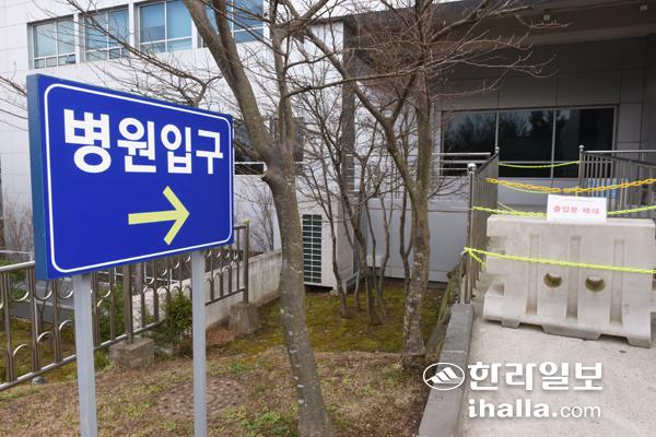 제주대학교병원 음압 병상 입구가 통제되고 있다.