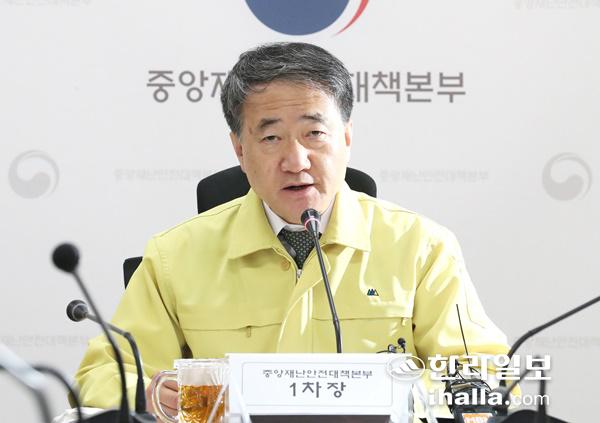 박능후 중앙재난안전대책본부 1차장(보건복지부 장관)이 7일 오전 세종시 정부세종청사에서 열린 신종 코로나바이러스 감염증(코로나19) 대응 중앙재난안전대책본부 회의를 주재하며 발언하고 있다. 연합뉴스