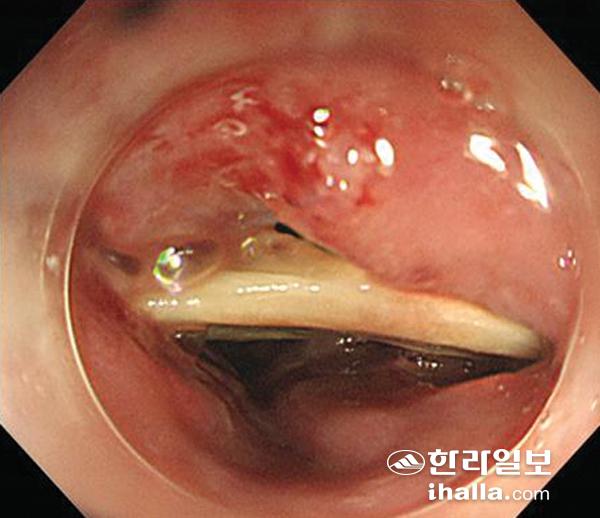▶내시경 시기=모서리나 가시가 없어 장관에 손상을 입힐 가능성이 적고 크기가 작은(2.5㎝ 미만) 이물의 경우 식도에 일시적으로 정체하더라도 이후에 통과해 배출되는 경우가 많아 12~24시간 가량 관찰이 가능하다. 하지만 이물이 식도에서 정체된 상태로 24시간 이상 경과할 때 천공, 감염 등의 합병증 발생 확률이 크게 높아질 수 있어 24시간 이상 내시경을 지연하는 것은 권유되는 방법이 아니다.