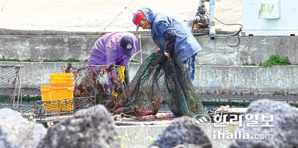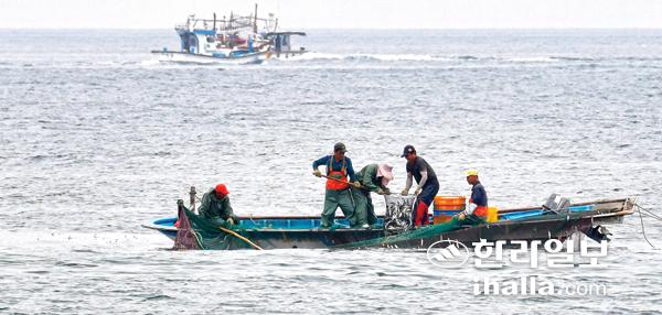 코로나19 사태에 1·3차 산업이 중심인 제주경제가 치명타를 맞으면서 체질 개선이 시급해졌다. 사진은 도내 양식장에서 일하는 어민.