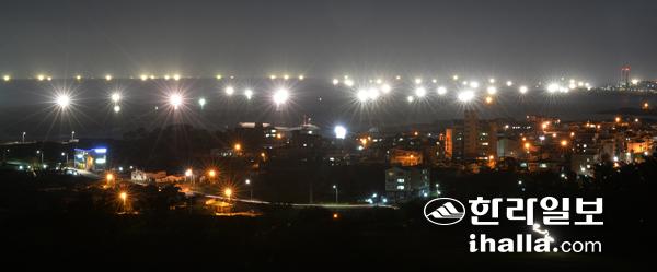 집어등으로 반짝이는 제주 여름 야경