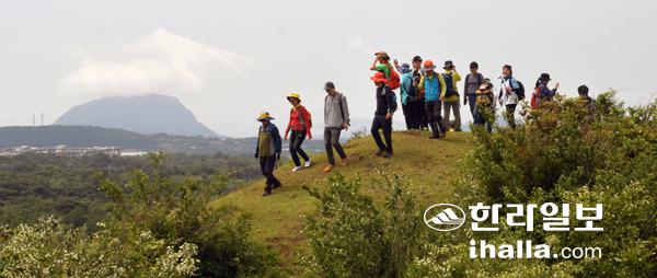 새로운 길잡이를 앞세워 첫번째 행선지인 남송이오름을 오른다. 경사가 가팔라 시작부터 땀이 나왔지만 코스가 야자수매트로 잘 정비돼 있고, 따가운 햇볕에 비해 바람은 아직 서늘해 본격적인 산행에 나서기 전 '워밍업' 역할을 해줬다.
