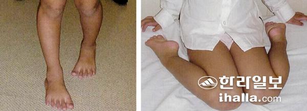 대퇴골 전염각 증가로 내족지 보행을 보이며 앉을 때 W자 자세를 선호한다. 사진 출처=대한소아정형외과학회