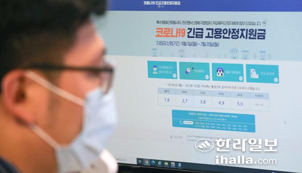 노동부는 지난달 1일 긴급 고용안정지원금 전용 웹사이트(covid19.ei.go.kr)로 온라인 신청 접수에 들어갔고 같은 달 22일부터는 전국 고용센터에서 오프라인 신청을 받고 있다.