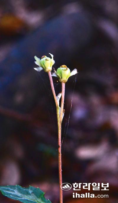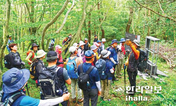 정상에서 잠시 휴식을 취하며 제주의 아름다운 자연경관을 감상한 뒤 참가자들은 서둘러 다음 목적지인 4·3수악주둔소로 향했다. 코스 내내 평소 보기 어려운 식생물들이 만개, 참가자들의 시선을 사로잡았다. 대표적인 것이 매화노루발, 무엽란, 실꽃풀, 호자덩굴, 말총버섯, 낙엽버섯 등이다.