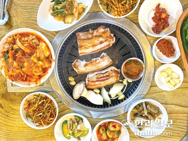 낮엔 넉넉한 집밥처럼 저녁엔 지글지글 돼지구이