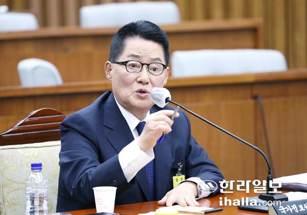 박지원 국가정보원장 후보자가 27일 서울 여의도 국회에서 열린 정보위원회 인사청문회에서 의원들의 질의에 답변하고 있다.연합뉴스
