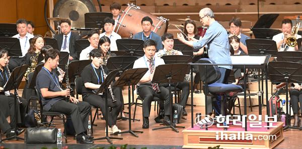 제25회 제주국제관악제가 11일부터 5일간의 일정으로 제주아트센터와 문예회관 등에서 펼쳐진다. 올해는 코로나19 여파로 국내팀만 무대에 오르고 유튜브 채널을 이용한 비대면 온라인 공연으로 관악 연주를 만날 수 있다. 첫날 저녁 개막 공연에 앞서 이날 오후 3시부터 제주아트센터에서 제주도립서귀포관악단의 최종 리허설이 이뤄지고 있다. 이상국기자