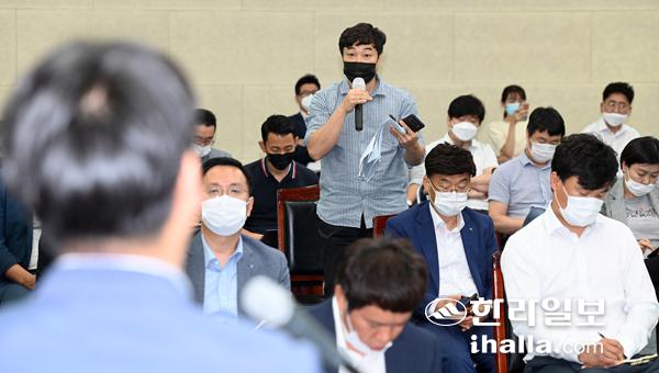 제주에서 발행되는 지역화폐(지역상품권) 운영 대행 기관이 이달 선정될 예정인 가운데 제주도가 11일 도청에서 지역화폐 운영 대행 용역 설명회를 열어 관련 기관의 의견을 수렴하고 있다. 이상국기자