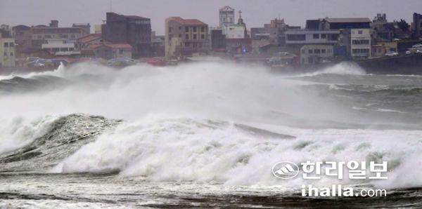 2일 북상하는 제9호 태풍 '마이삭'의 영향권에 접어든 가운데 서귀포시 성산읍 성산일출봉 해안에 집채만한 파도가 몰아치고 있다. 강희만기자