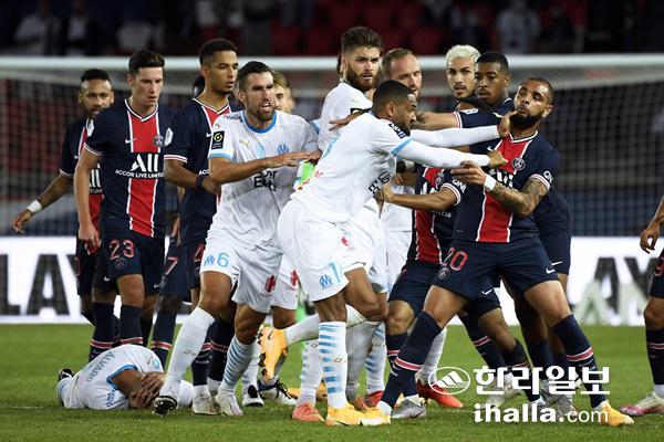 난투극 벌이는 파리 생제르맹과 마르세유 선수들.연합뉴스