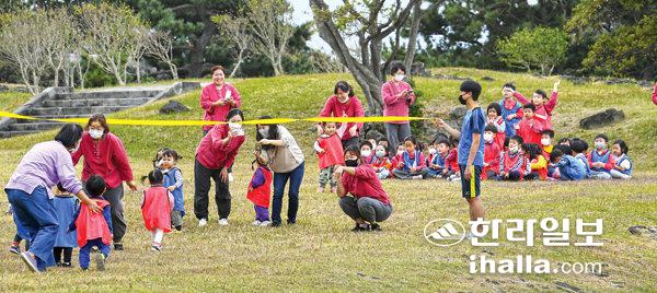 아이들의 가을21일 제주시 조천읍 조천항일기념관 앞 잔디밭에서 가을 나들이를 나온 어린이들이 즐거운 시간을 보내고 있다. 이상국기자