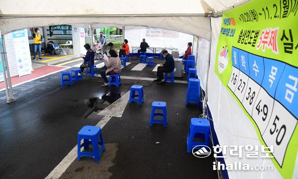 22일 제주보건소 접종자 대기장소가 한산한 풍경을 모이는 모습. 강희만기자