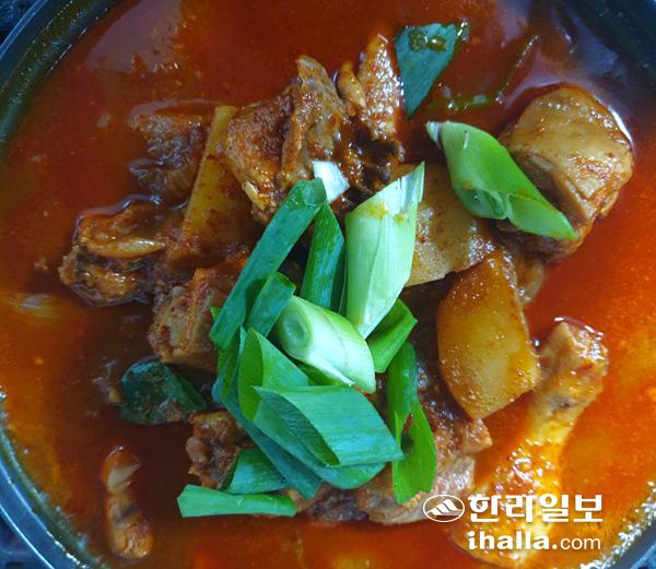 닭도리탕. 칼칼한 국물과 쫄깃한 닭이 일품이다.